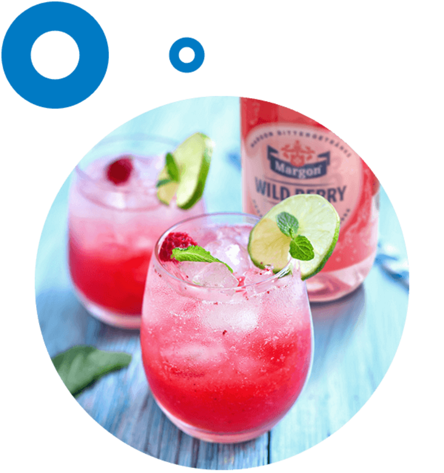 Himbeerpüree und Limettensaft zusammen mit ein paar Eiswürfeln ins Glas geben und leicht verrühren. Anschließend mit Margon Wild Berry auffüllen und mit frischen Himbeeren dekorieren.